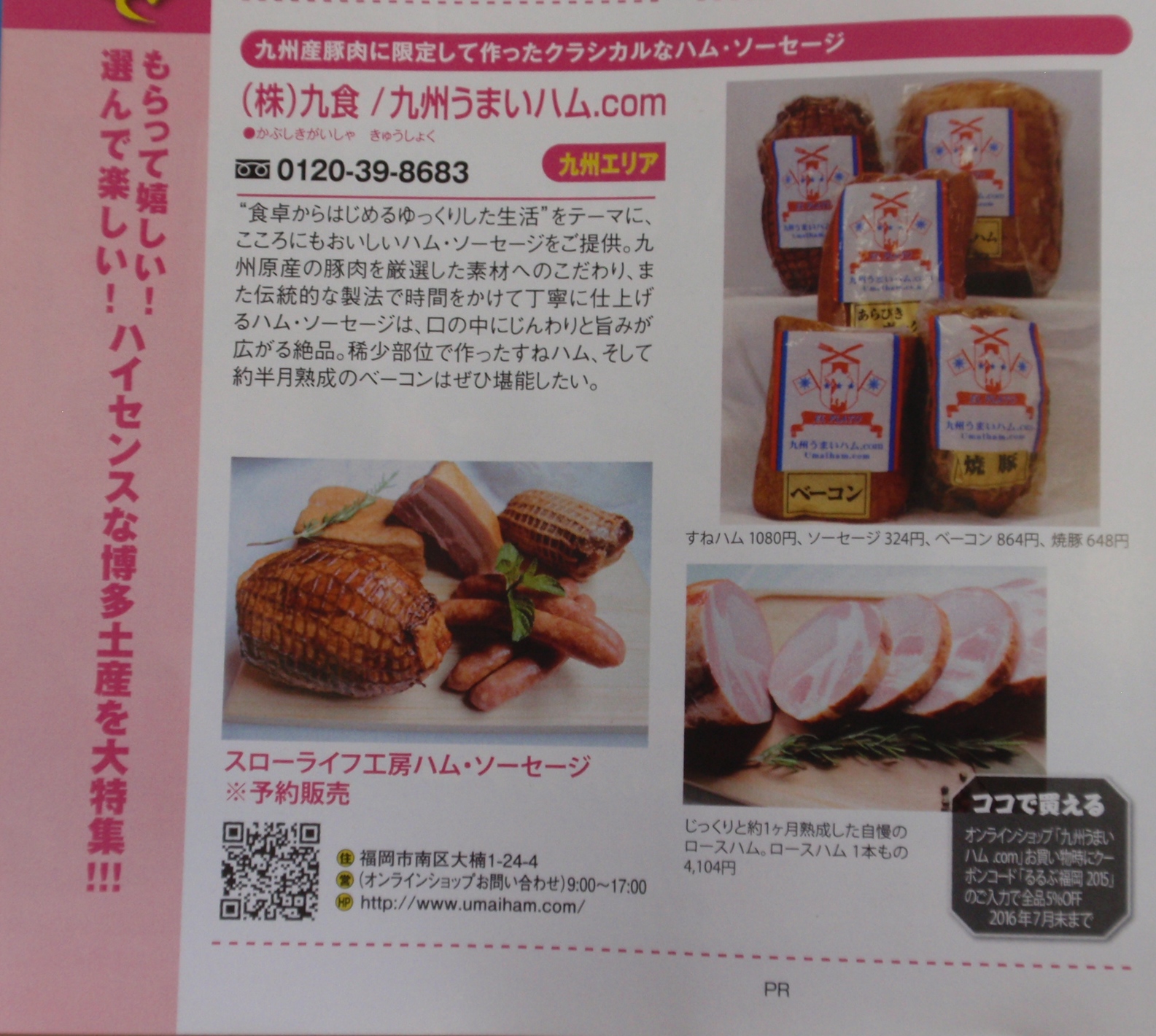 「九州うまいハム.com」のスローライフ工房ハム・ソーセージが「厳選! 福岡おみやげ&お取り寄せ」のコーナーで紹介していただきました。