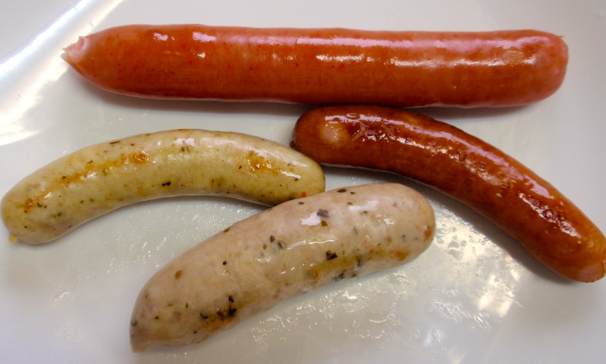 ピザ風味、ハーブ入り、激辛、ポークソーセージを是非食べに来て下さい。